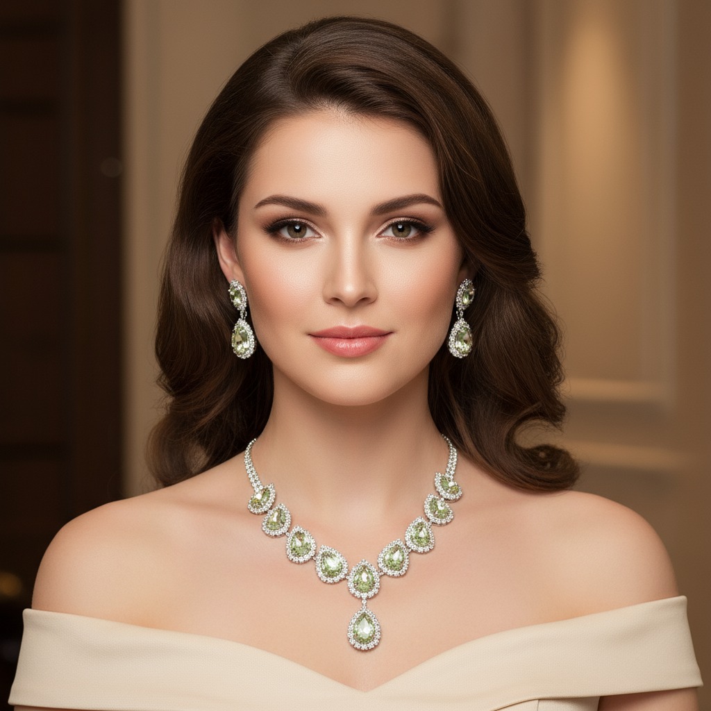 Home Jewelry Accessories Jewelry Sets Silver Jewelry Sets Crystal Set Green Model 4