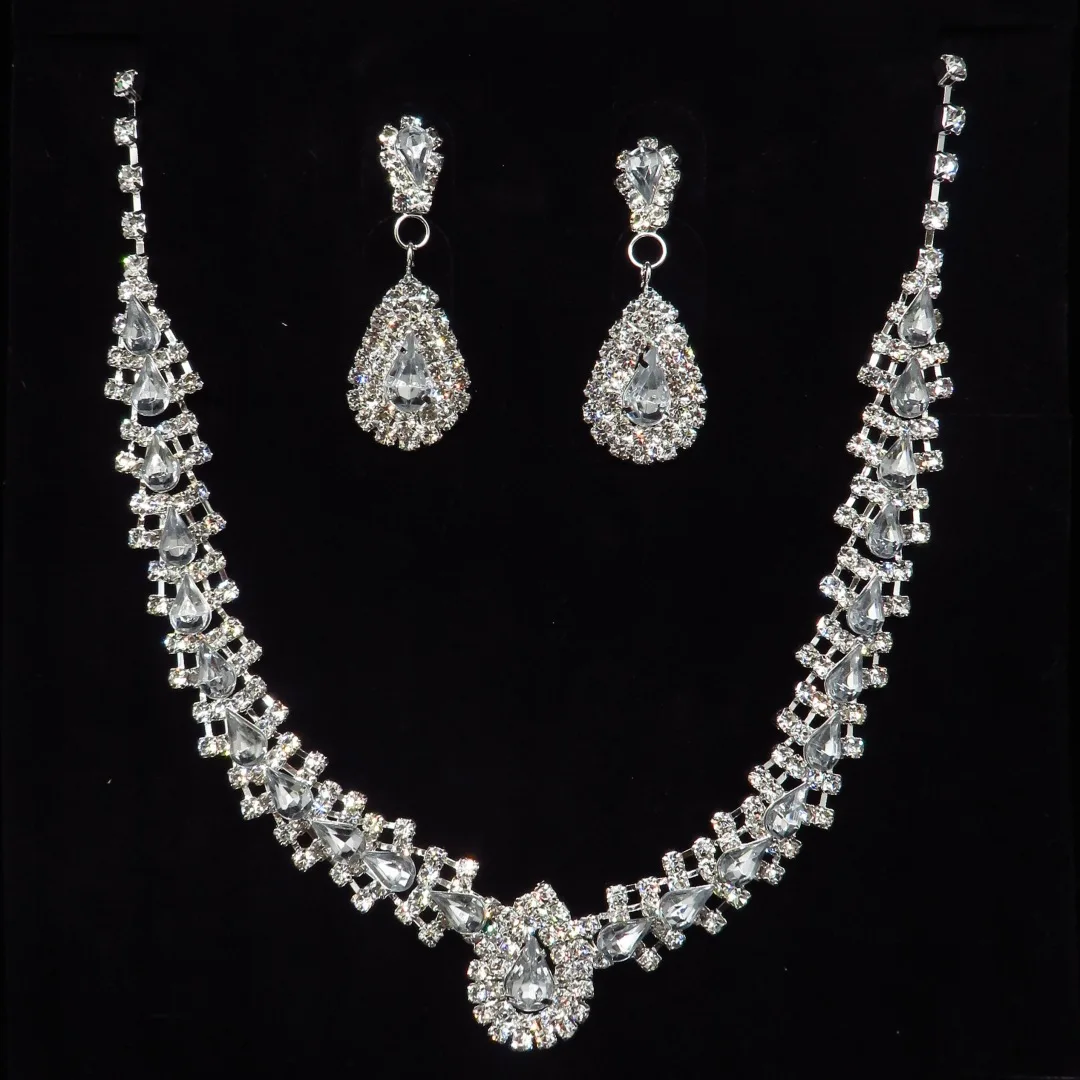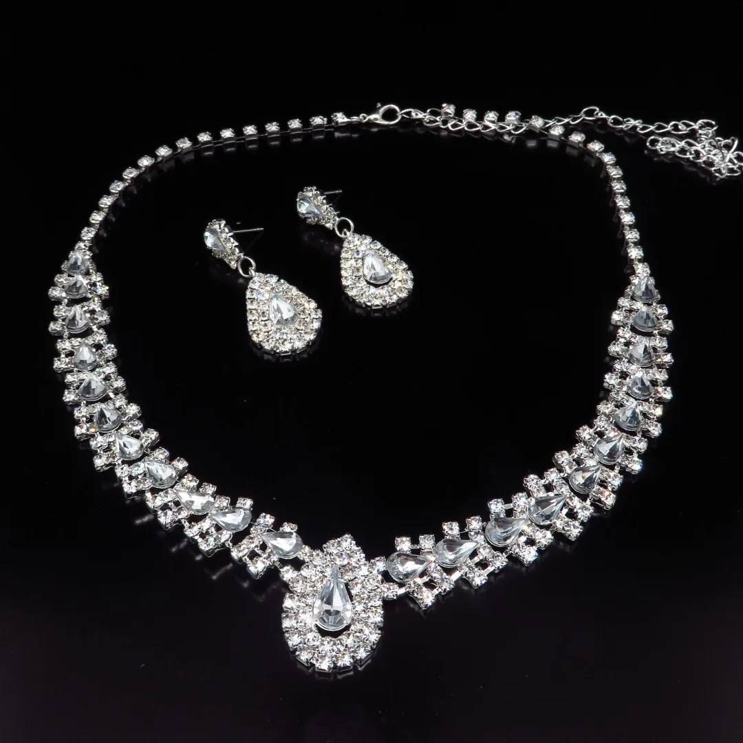 Product Name | Light Luxury Minimalist Princess 2pcs Rhinestone Chain Zircon Round Crystal Necklace Earrings Bridal Set |