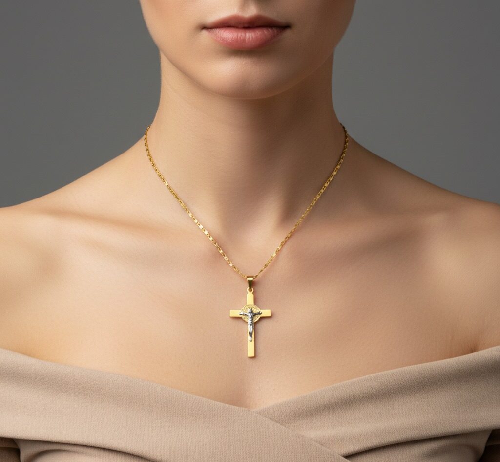 | Pendant | Two-tone crucifix — gold cross with silver-tone Jesus figure |