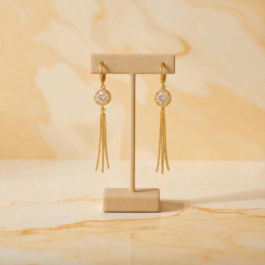 Be the first to review “Gold Tassel Drop Earrings with Crystal Accent” Cancel reply