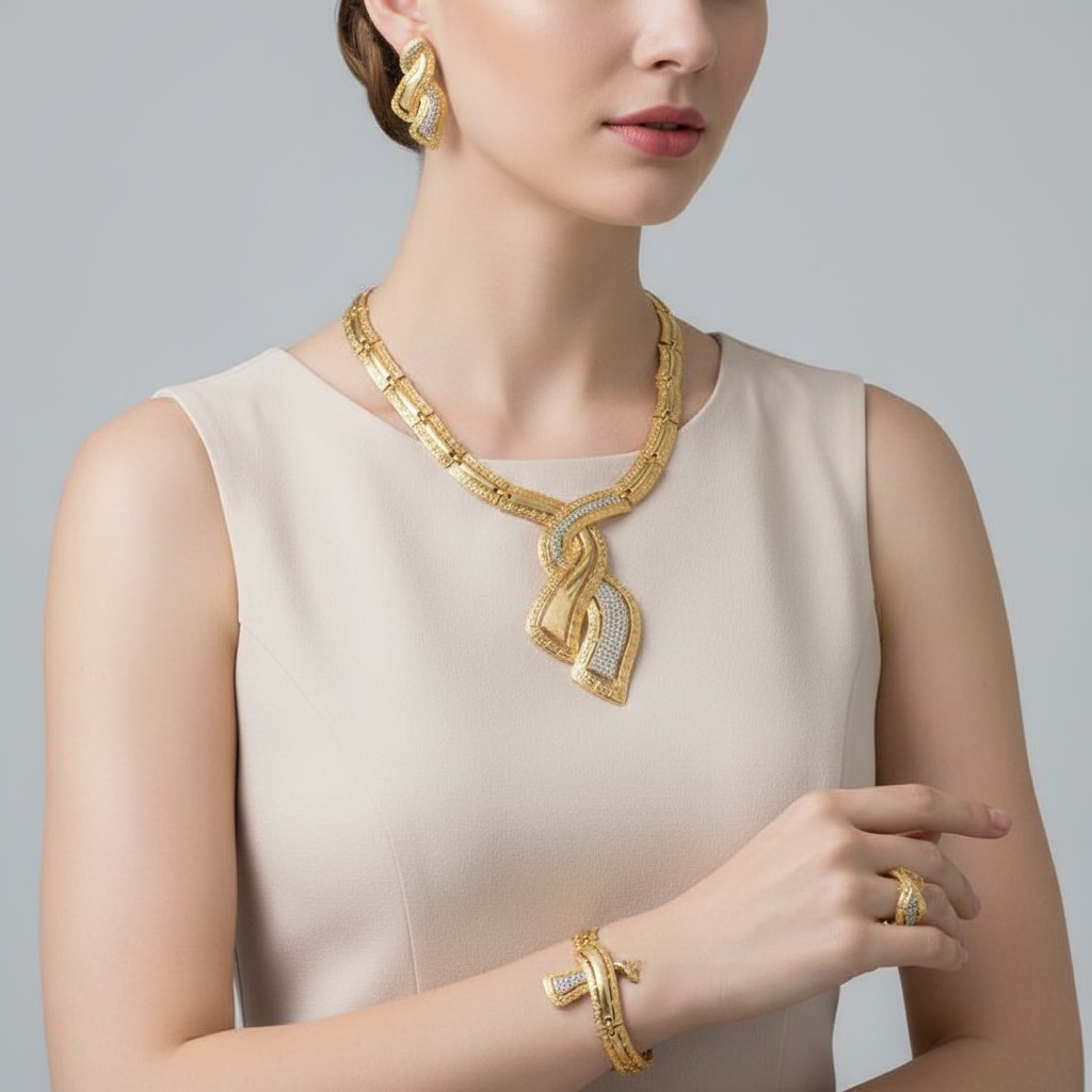 Home Jewelry Accessories Jewelry Sets Gold Jewelry Sets Luxury Charm Twist Set
