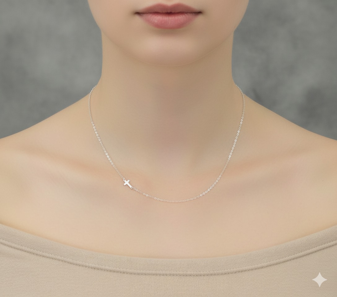 Home Jewelry Accessories Religious Jewelry Christian Jewelry Silver Christian Jewelry Mini Side Cross Necklace