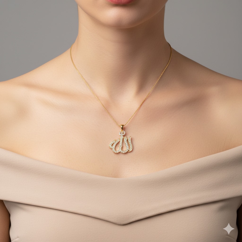 Home Jewelry Accessories Religious Jewelry Islamic Jewelry Gold Islamic Jewelry Shiny Rhinestone Allah Necklace